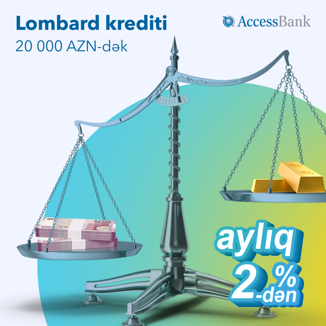 Sizin yerli Avropa bankınız AccessBank müxtəlif növ kredit məhsullarının sırasına Lombard kreditini də əlavə edir. Kredit əldə etmək üçün girov qismində dəyərli metallar və qızıl zinət əşyaları qəbul edilir.