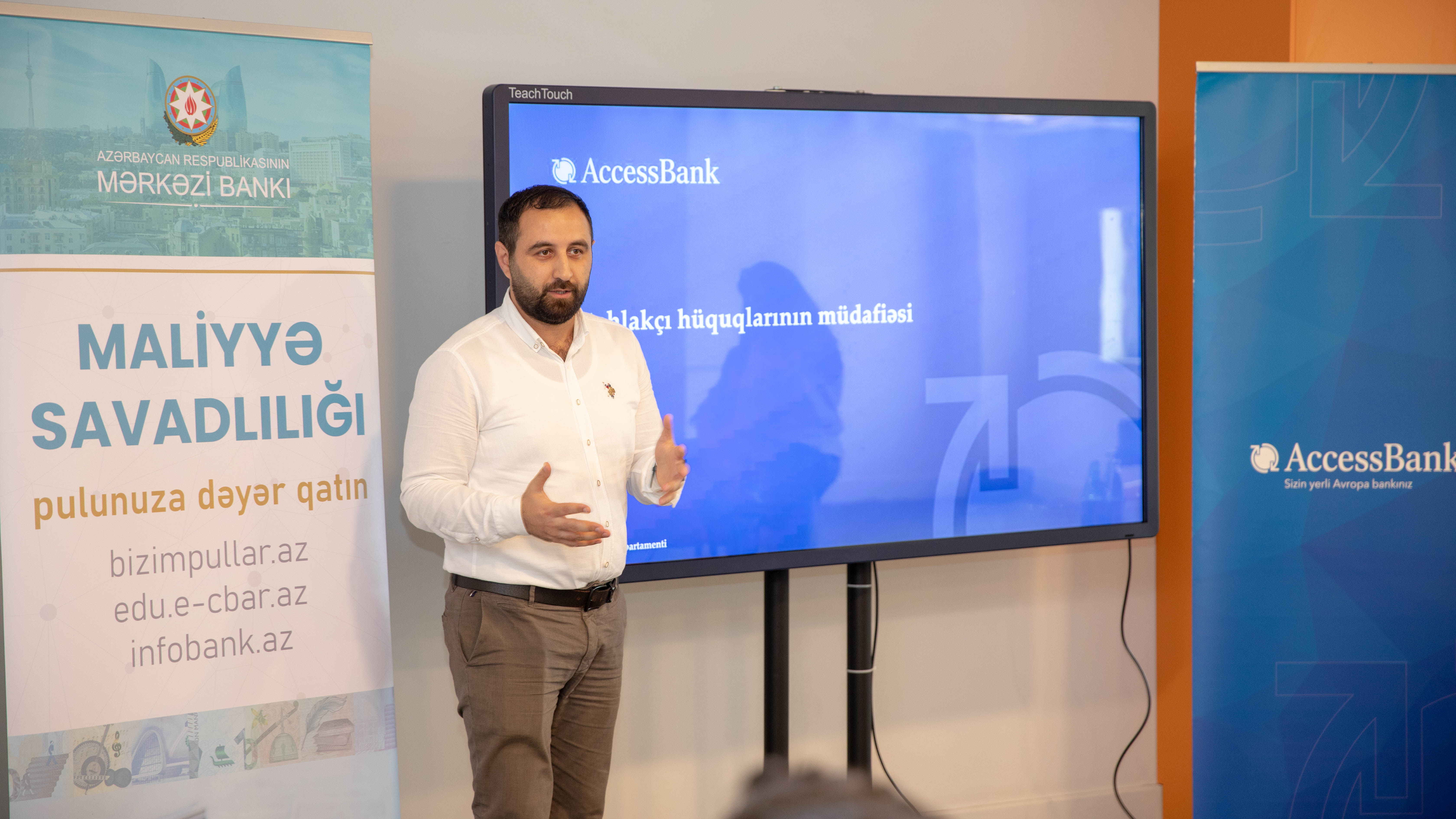 Daha sonra AccessBank-ın əməkdaşı Pərvin Məmmədov “İstehlakçı hüquqlarının müdafiəsi” mövzusunda sahibkarlara fəaliyyət dövründə lazım olan mövzularla bağlı təlim keçərək iştirakçıların suallarını cavablandırdı.