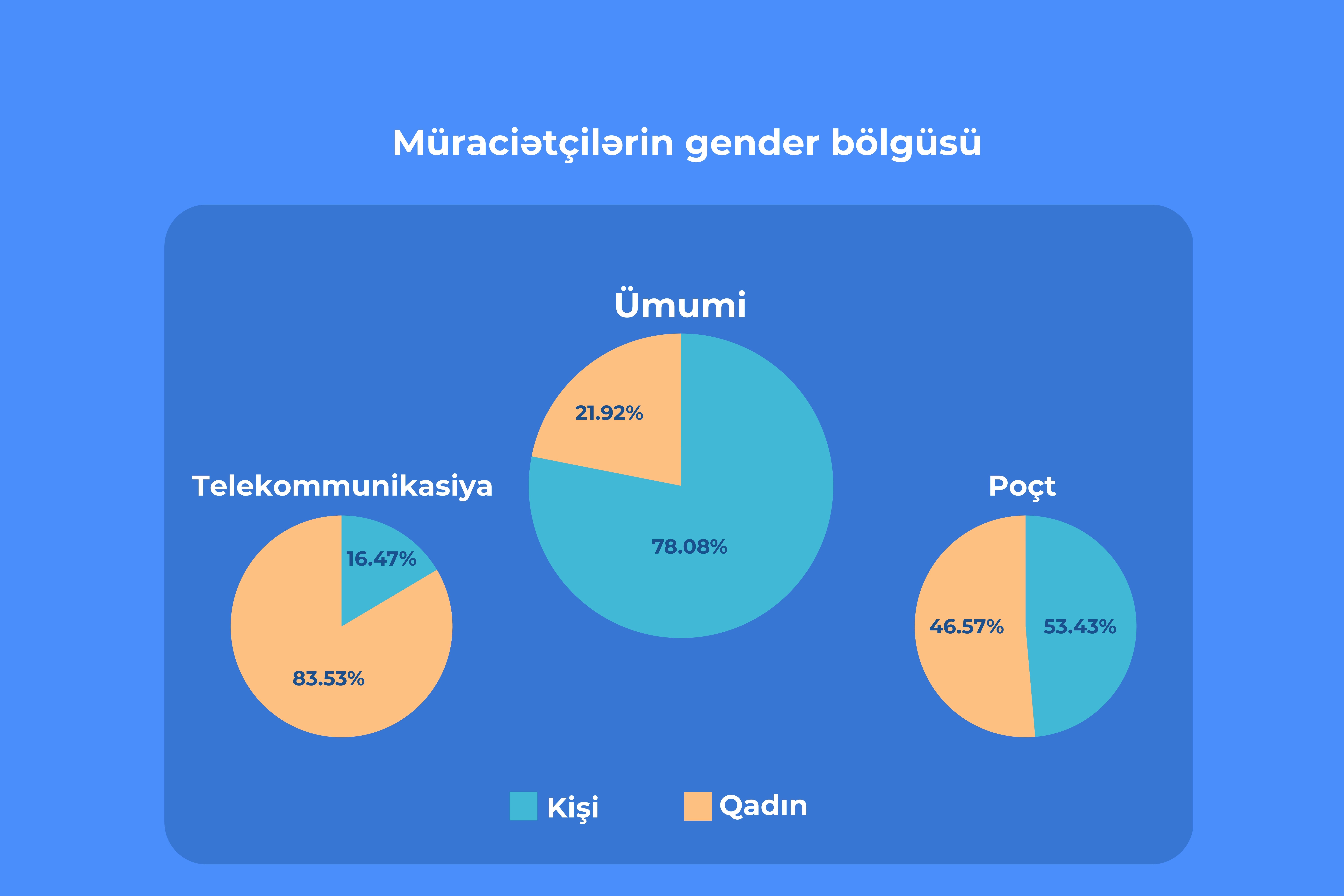 2025-ci ilin yanvar-avqust ayları ərzində telekommunikasiya və poçt xidmətləri üzrə ümumilikdə 4165 şikayət daxil olub. Bu müraciətlərin 62.6%-i internet (GPON, ADSL və s.) və telefon (məftilli) rabitəsi xidmətləri, 18,9% mobil internet və rabitə xidmətləri, 18,5%-i poçt rabitəsi xidmətləri üzrə qeydə alınıb. Bu müddət ərzində hər gün orta hesabla sistem vasitəsilə 17 şikayət daxil olub. Bu müraciətlər ümumilikdə 108 telekommunikasiya və poçt xidmətləri təchizatçısı barədə ünvanlanıb.