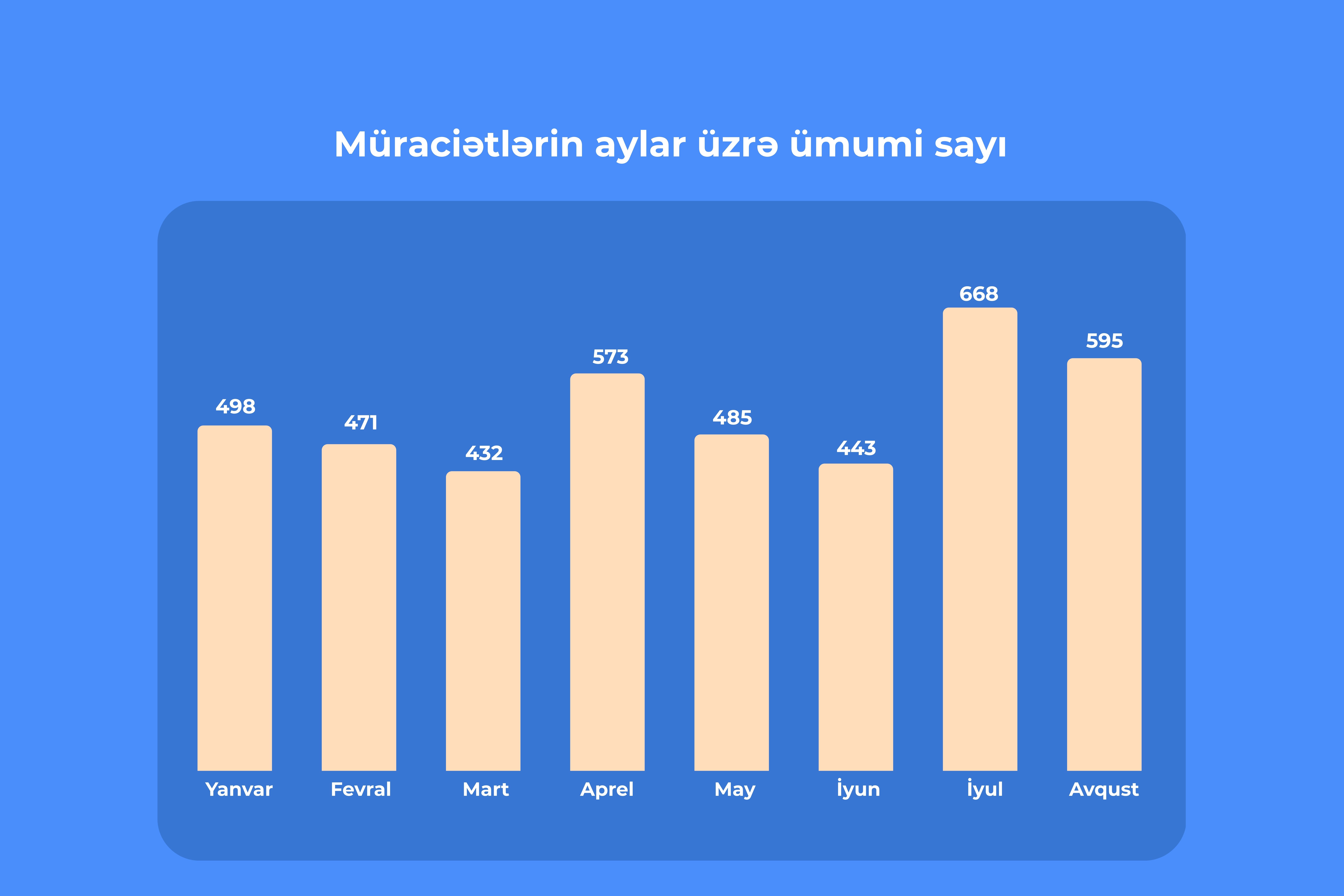 Sistem üzərindən ilin 8 ayı ərzində 78,08% kişi, 21,92% qadın müraciət edib.