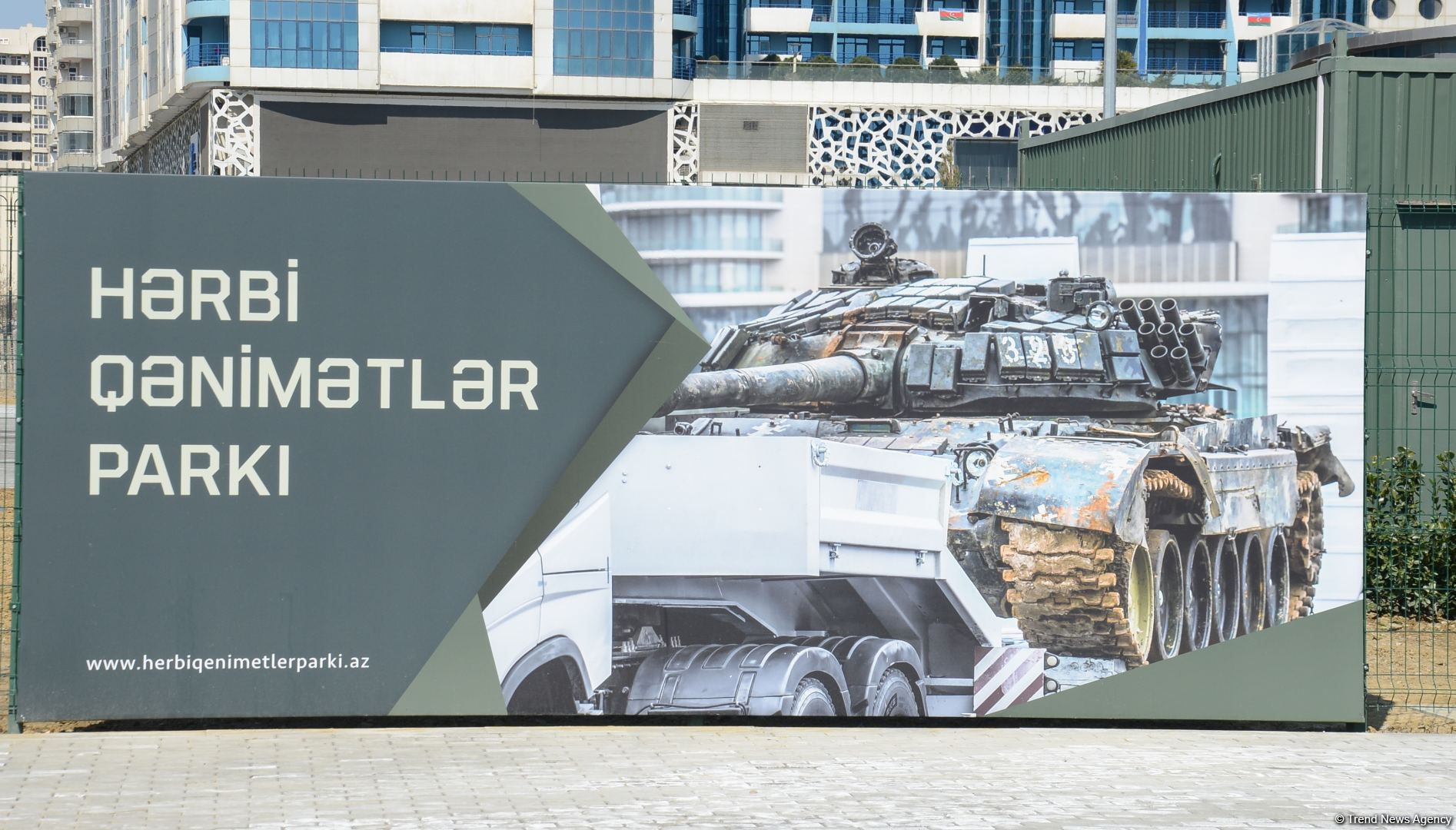 Bakıda salınan Hərbi Qənimətlər Parkında son tamamlanma işləri görülür.