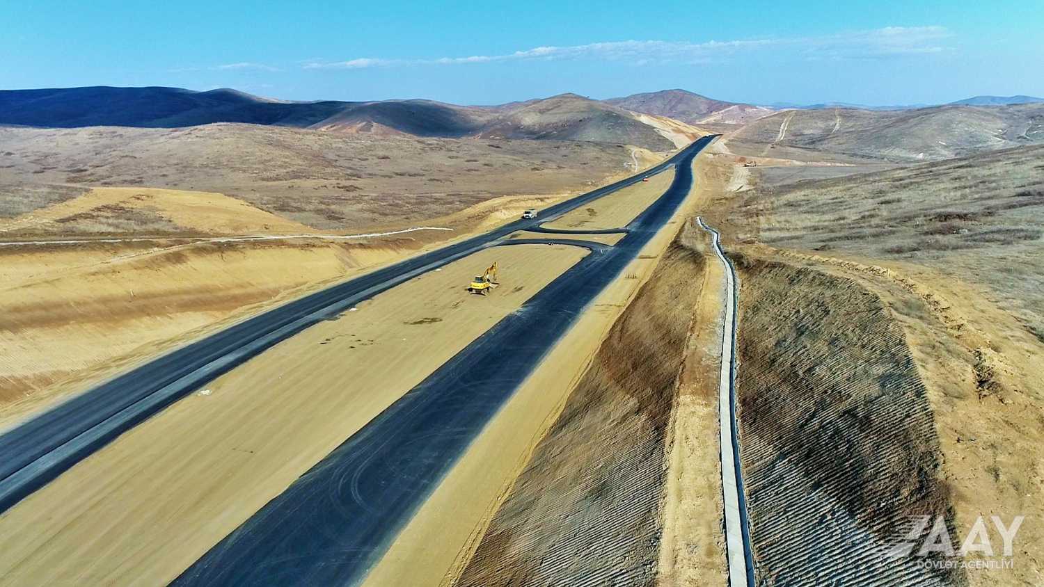 Xüsusi texnikalardan istifadə olunmaqla yolun genişləndirilərək profilə salınması və I texniki dərəcəyə uyğun yeni torpaq yatağının və yol əsasının inşası tam olaraq yekunlaşıb. Yolun 11-km hissəsində asfalt örtüyünün alt layının döşənməsi işləri icra olunub.