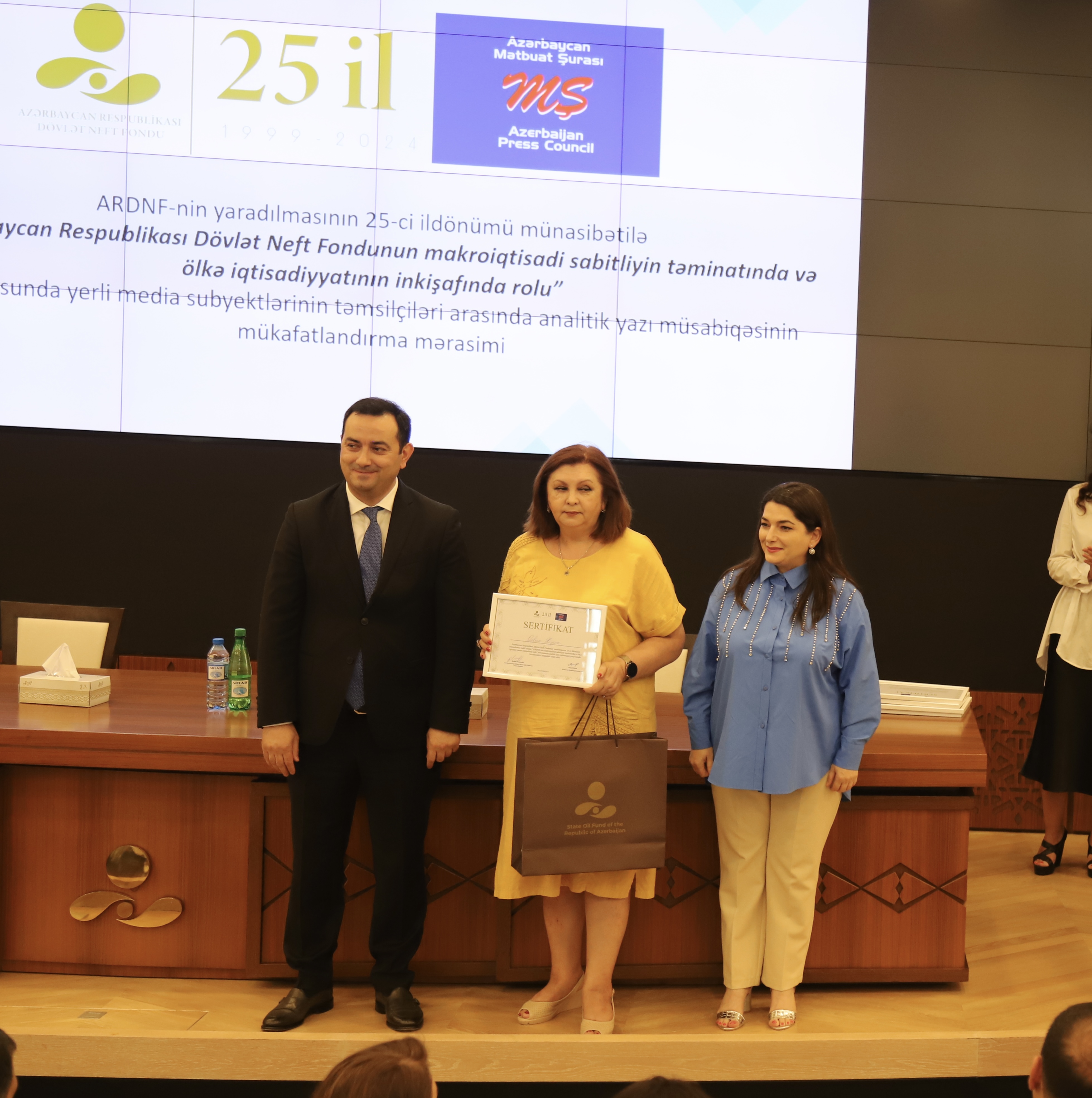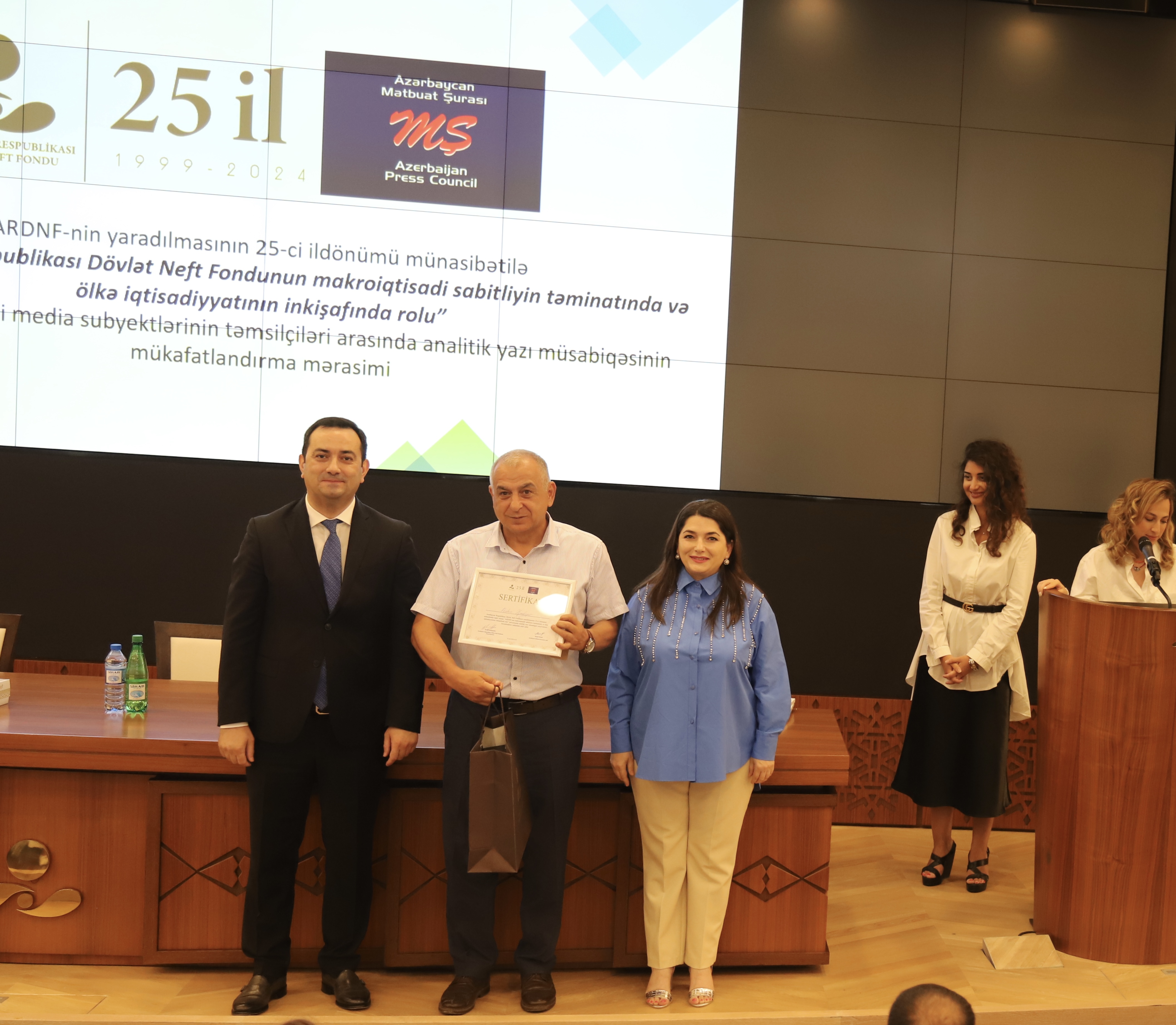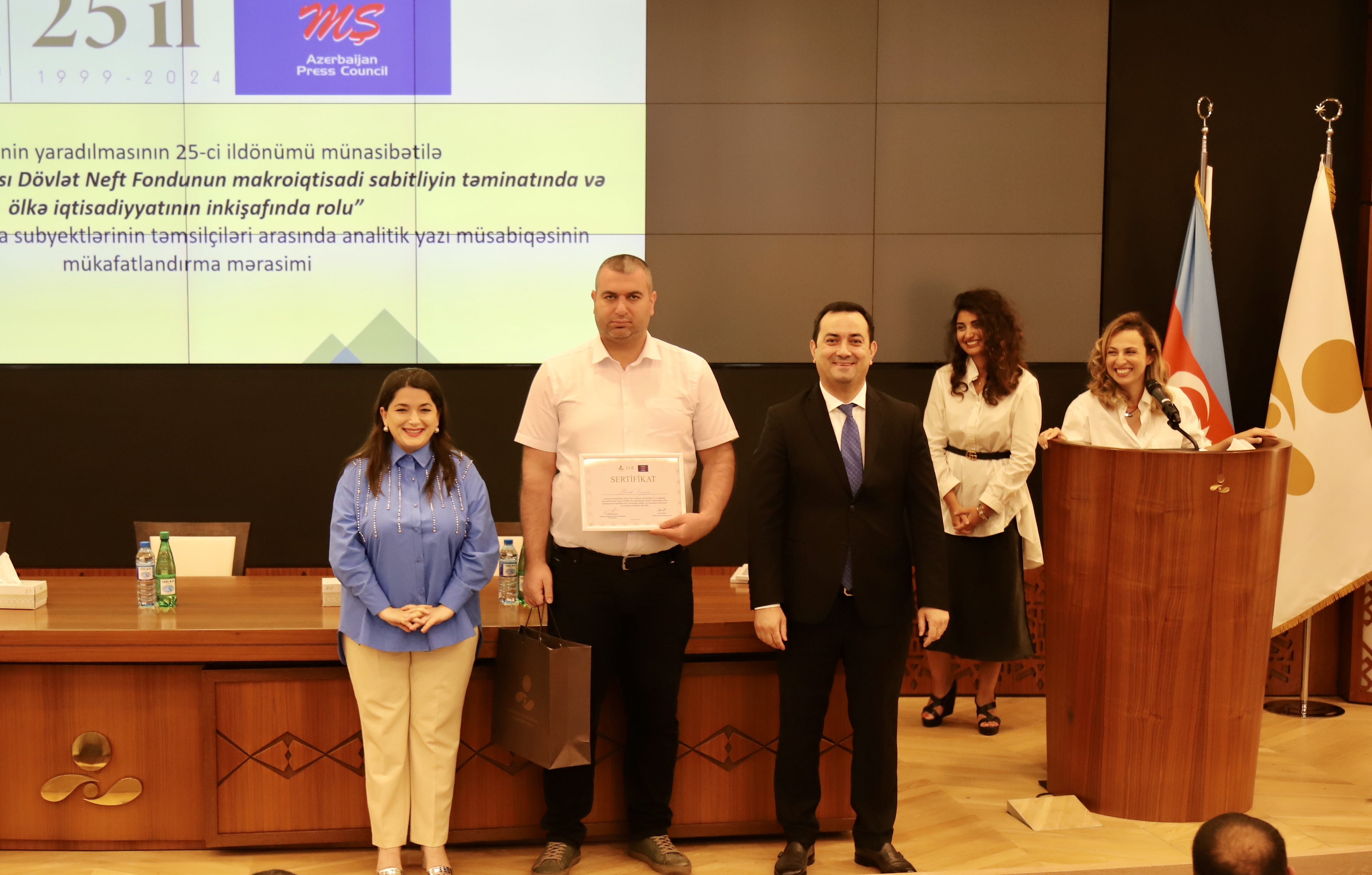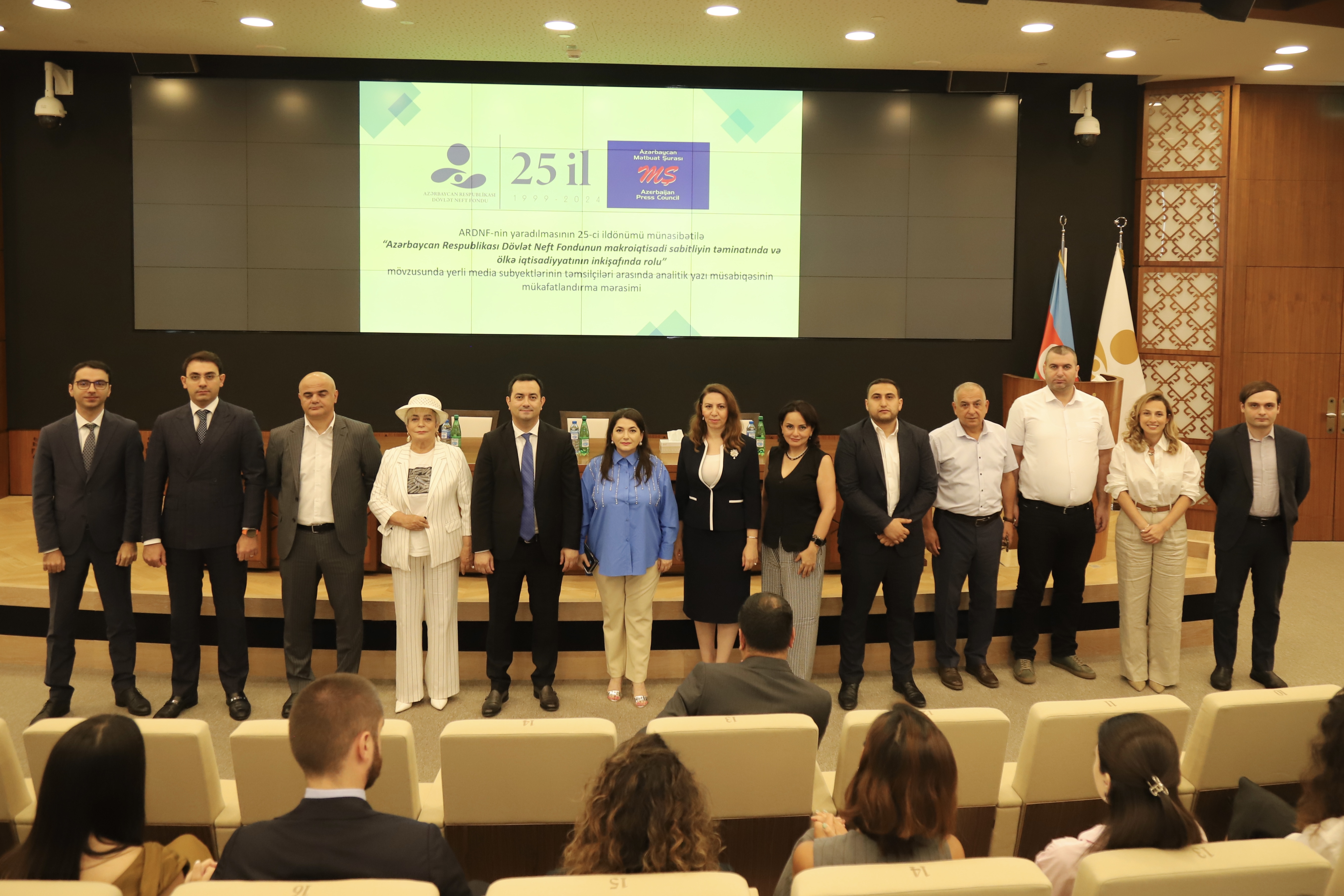25 iyul 2024-cü il tarixində ARDNF və Azərbaycan Mətbuat Şurası tərəfindən Fondun yaradılmasının 25-ci ildönümü münasibətilə “Azərbaycan Respublikası Dövlət Neft Fondunun makroiqtisadi sabitliyin təminatında və ölkə iqtisadiyyatının inkişafında rolu” mövzusunda yerli media subyektlərinin (qəzet, jurnal, informasiya agentliyi, internet informasiya resursu) təmsilçiləri arasında keçirilən analitik yazı müsabiqəsinin mükafatlandırma mərasimi baş tutub.
