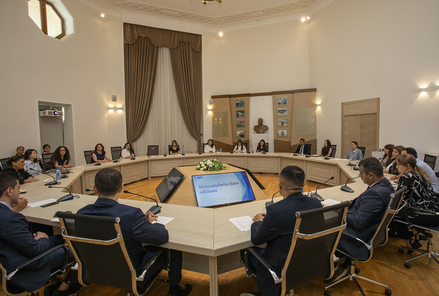 Təlimdə Dövlət İmtahan Mərkəzinin nümayəndələri Gülü Əliyeva və Nərmin Xəlilovanın mövzu ilə əlaqədar təqdimatları dinlənilib. Münaqişə anlayışı, istiqamətinə və həcminə görə növləri, yaranma səbəbləri və effektiv həlli, mürəkkəb insan tipləri, işgüzar mühitdə yaranmış gərgin situasiyalarda düzgün davranış strategiyaları, münaqişələrdə ünsiyyətlə bağlı əsas məqamlar, emosiyalara qarşı davranış və digər məsələlər haqqında ətraflı məlumat verilib. Sonda fərqli situasiyalara dair praktiki tapşırıqlar yerinə yetirilib, əməkdaşları maraqlandıran suallar cavablandırılıb.