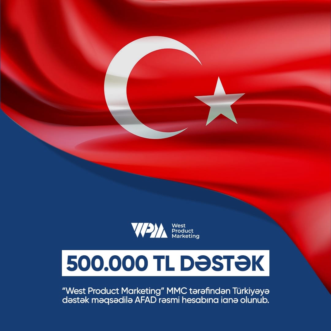 Fins.Az-ın məlumatına görə, “Westgold”, “Golden Crown”, “Gerda”, “Korovushka”, “Ashrafi” və “Sun Palermo” və başqa brendlərin idxalı və distribusiyasını həyata keçirən “Vest Produkt Marketinq” MMC tərəfindən qardaş Türkiyədə baş verən zəlzələdən təsirlənən insanlara yardım etmək məqsədilə AFAD rəsmi hesabına 500000 TL dəyərində yardım edilib.